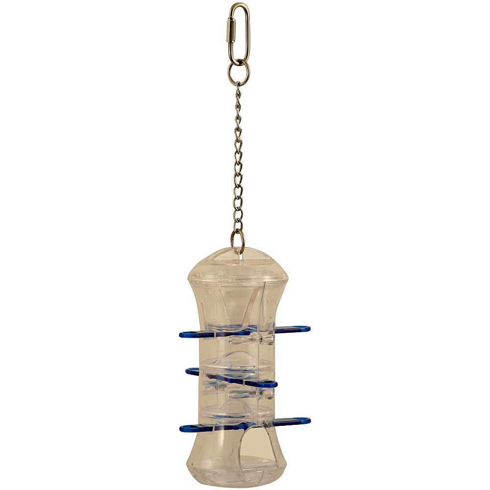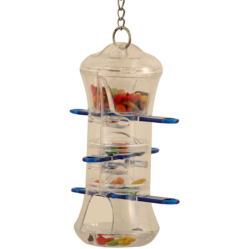Watch as the bird repeats the task on each slat until their rewards empty out in the bottom chamber. A great way to make meal times fun.