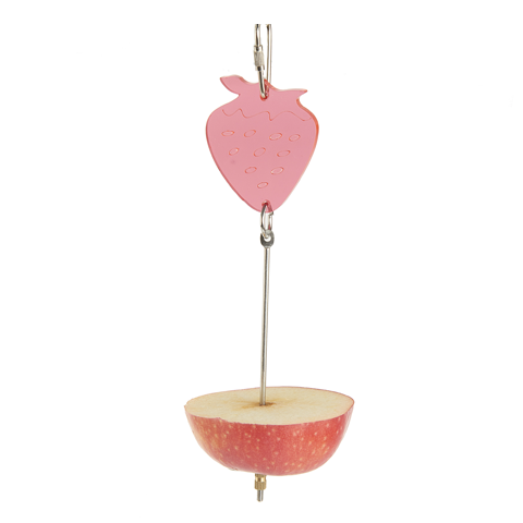 Stainless steel, hanging, fruit holder that will entertain you parrot or other pet, during feeding time!