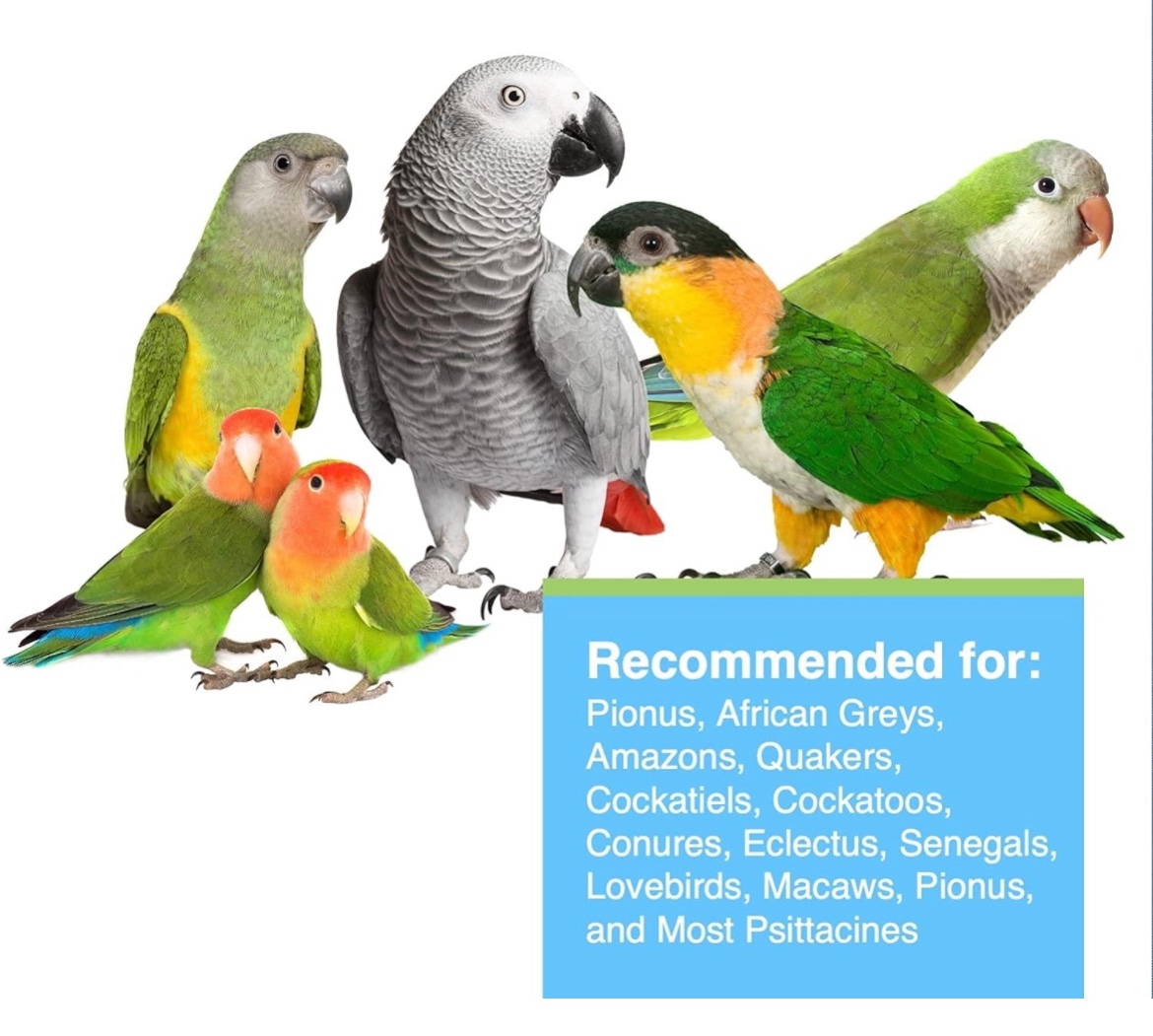 The high calorie content satisfies a growing baby Parrots needs, and optimal protein levels help baby birds to grow.