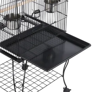 • Durable and safe: This rolling parrot cage is built-in powder-coated metal construction. The waterproof and rust-resistant painted frame provides your lovely birds with a safe living environment and also ensures the long service life of this cage.