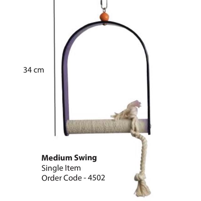 Strong acrylic arch bird swing. The perching area of the swing is straight to allow a softer grip for your birds. Solid perch with a concrete outer finish & cotton rope toy attached. Medium Acrylic Arch Swing (34x22cm)