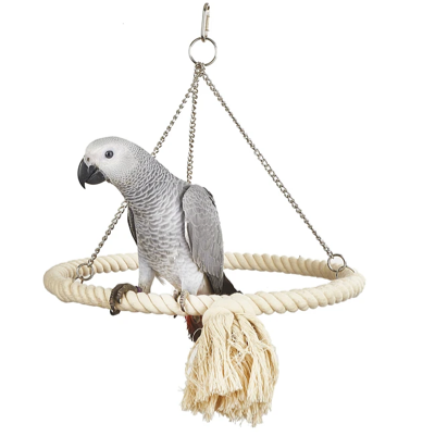 The Adventure Bound Toys Rope Ring toy is suitable for Medium Parrots, e.g. African Greys, Large Parrots, e.g. Macaws and other similar sized birds.