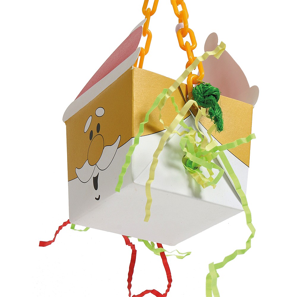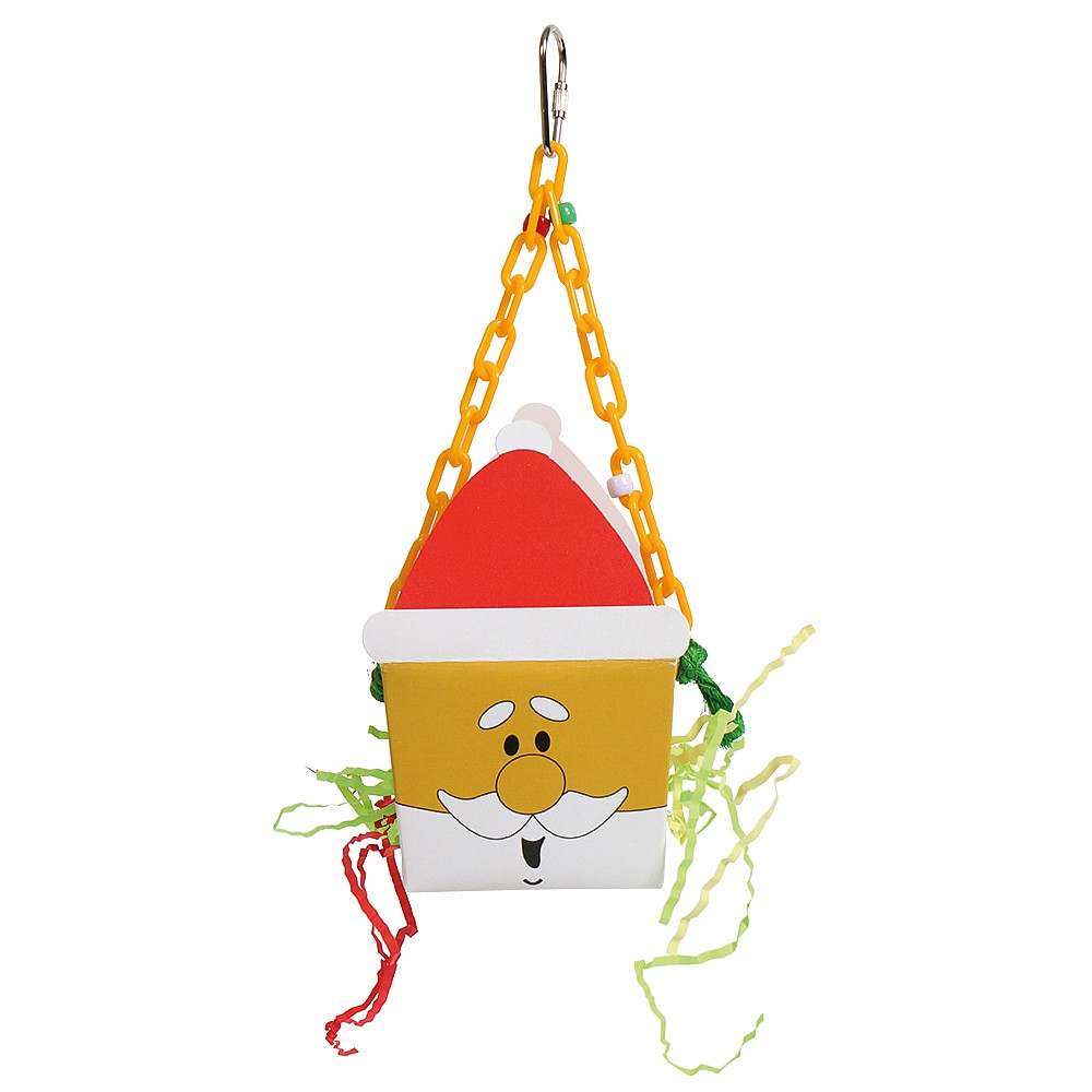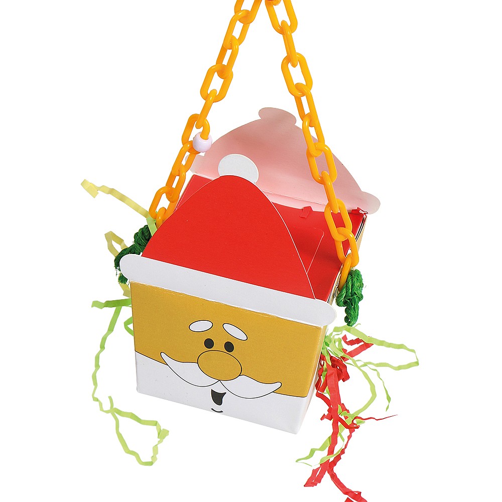 The Santa Foraging Goodie Box hangs from lengths of plastic chain, your customer can easily attach even more materials for their bird to explore and play with.