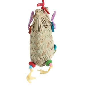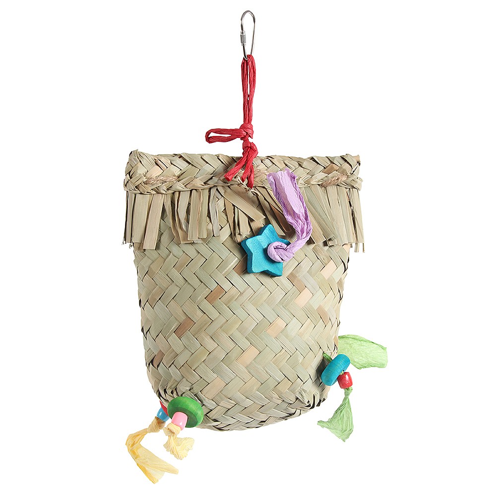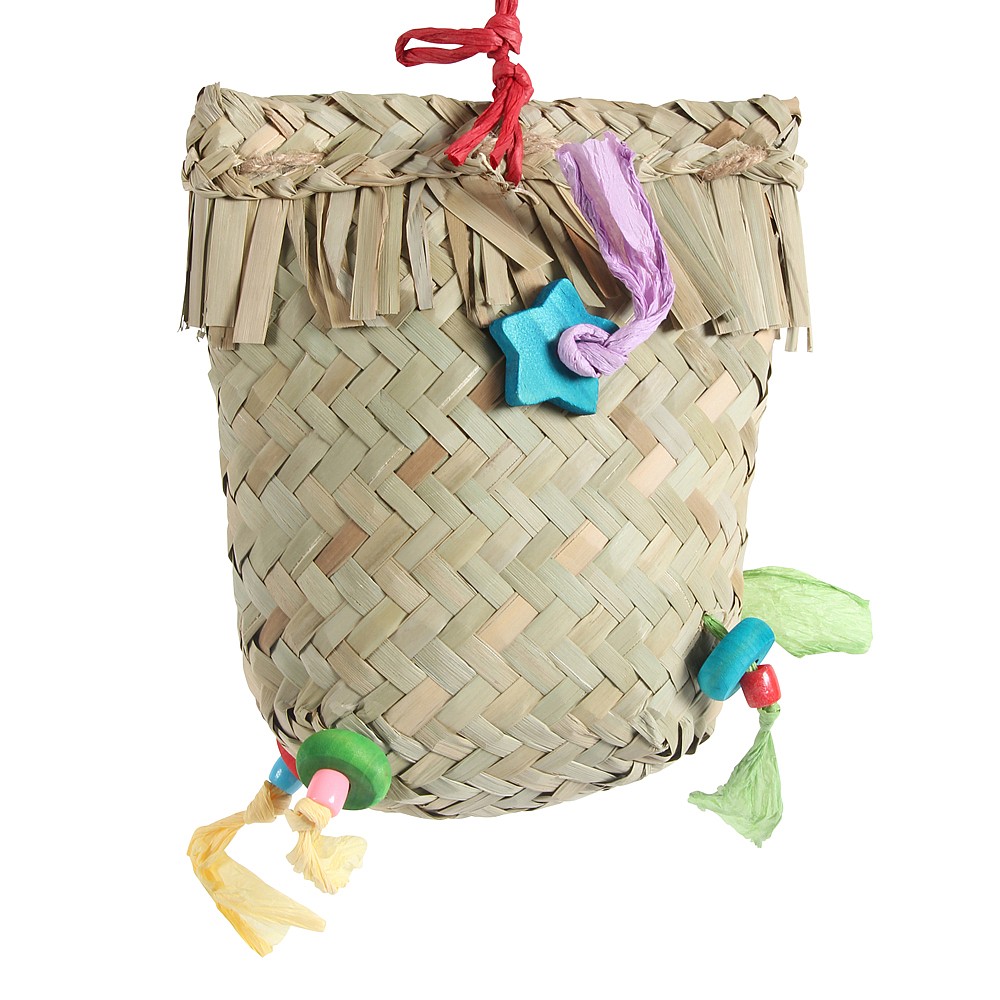 Chewing through and unravelling the palm leaf basket is great fun, it makes a wonderful crinkly noise as a Parrot plays.
