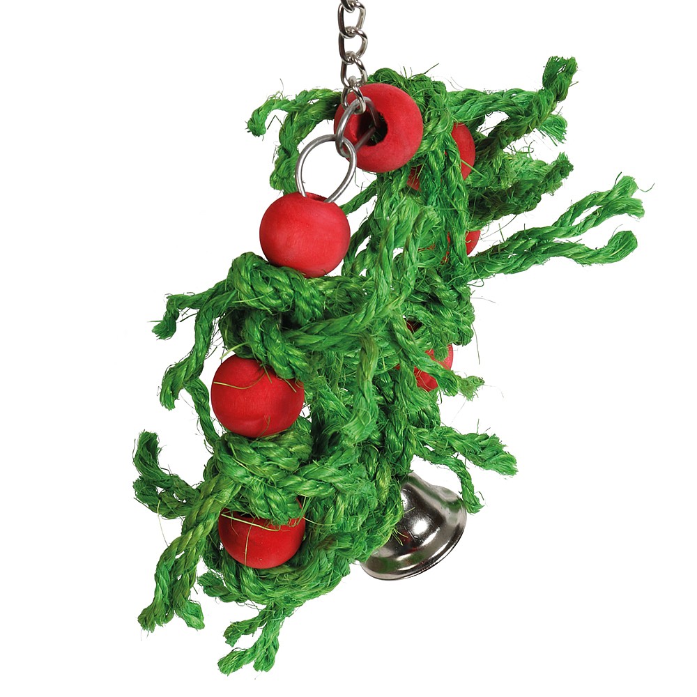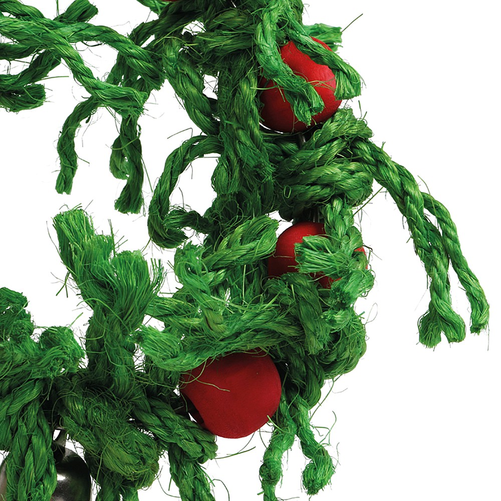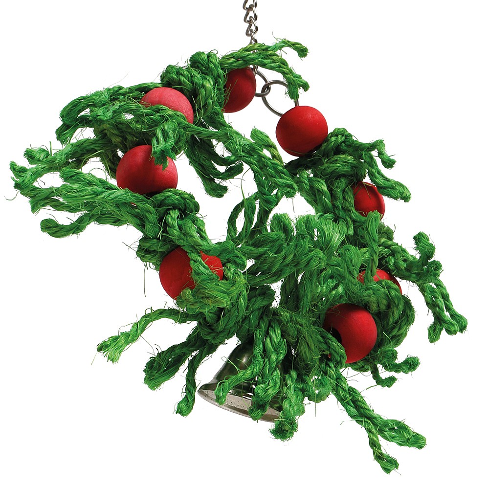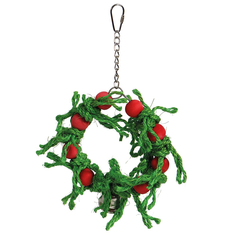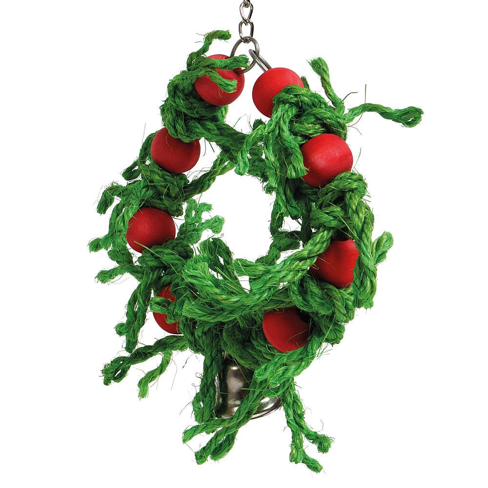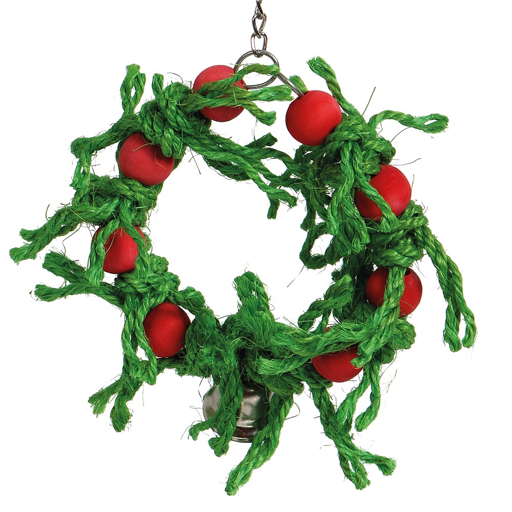 With lots of knotted sisal rope and wood blocks, this Sisal Christmas Wreath Parrot Toy is a fun and safe way to keep a bird busy.