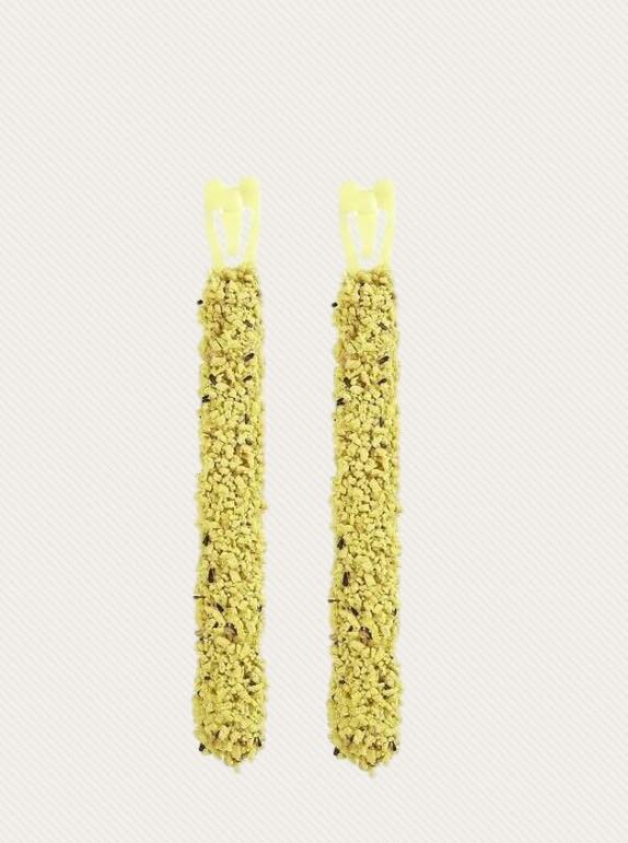 Vitakraft Krackers are designed to make your pet work for its treat. All krackers are baked three times on a natural wooden stick to ensure your budgie has plenty of nibbling satisfaction. The result is a feed that’s closer to the way budgies strip seed from grasses in the wild.Practical cage clip.